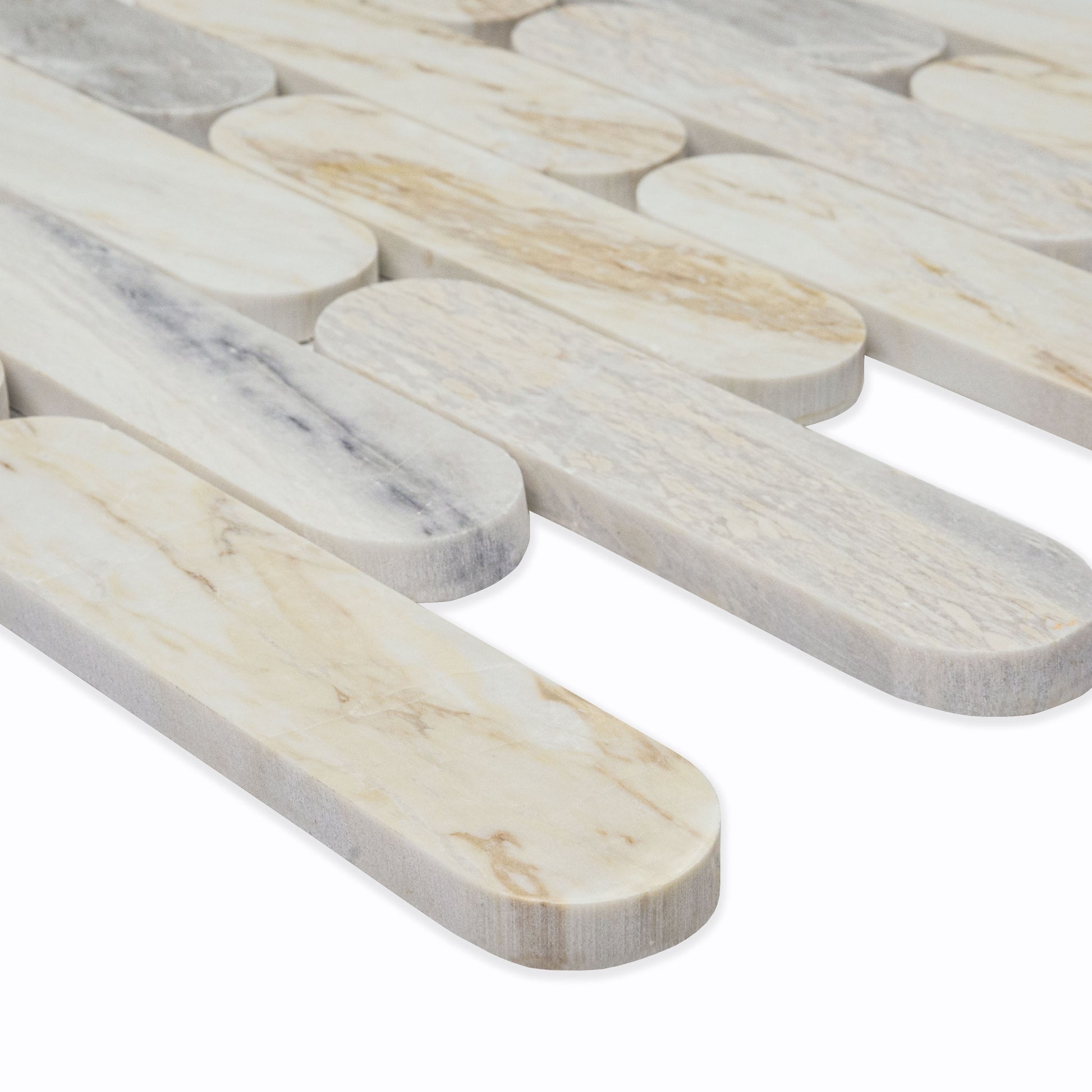 12x12 Angora Oval Mosaic Natural-Look Polished Smooth Marble Tile