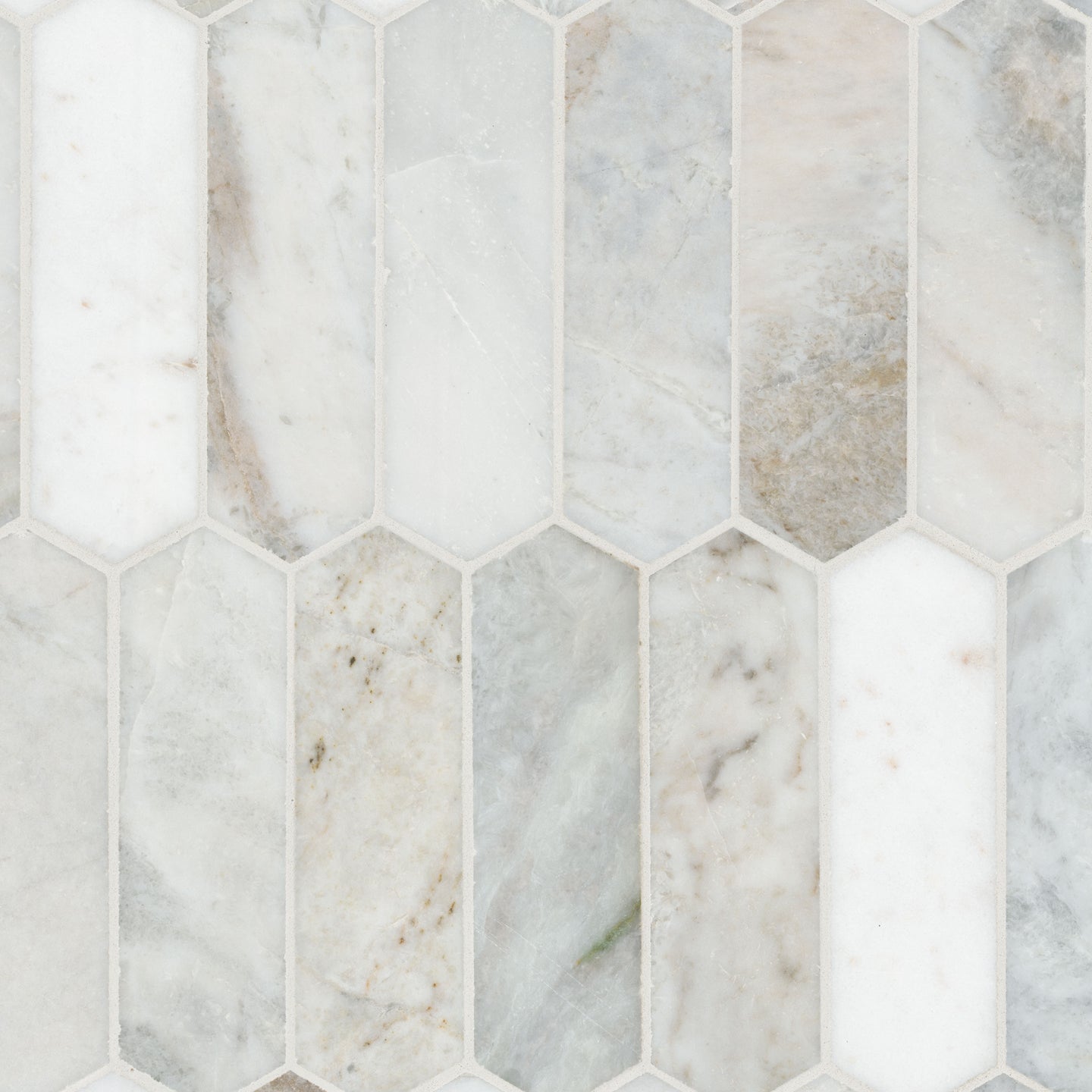 12x12 Arabescato Picket Mosaic Natural-Look Honed Smooth Marble Tile