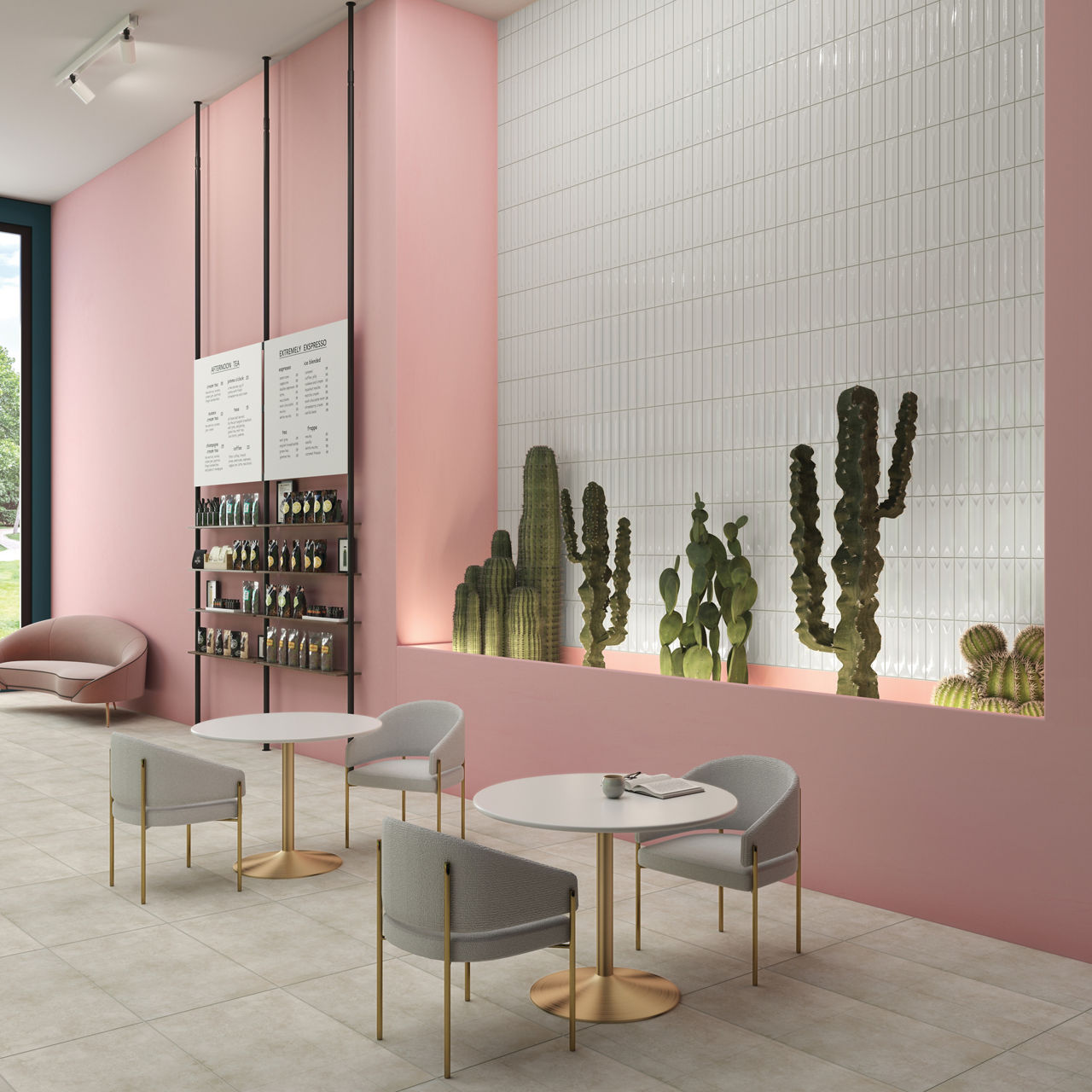 With its wavy surface and glossy finish, this jolly solid-color tile creates a look that feels intentional and well balanced.