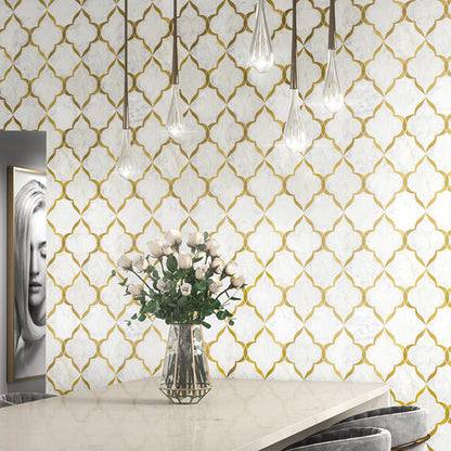 13x9 Lavaliere Arabesque Mosaic Mixed-Color Polished Natural Marble Tile